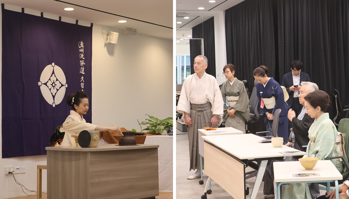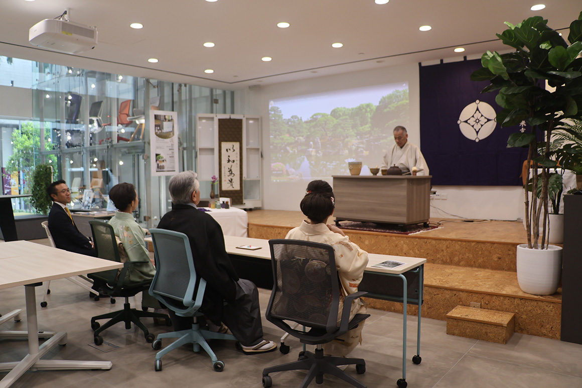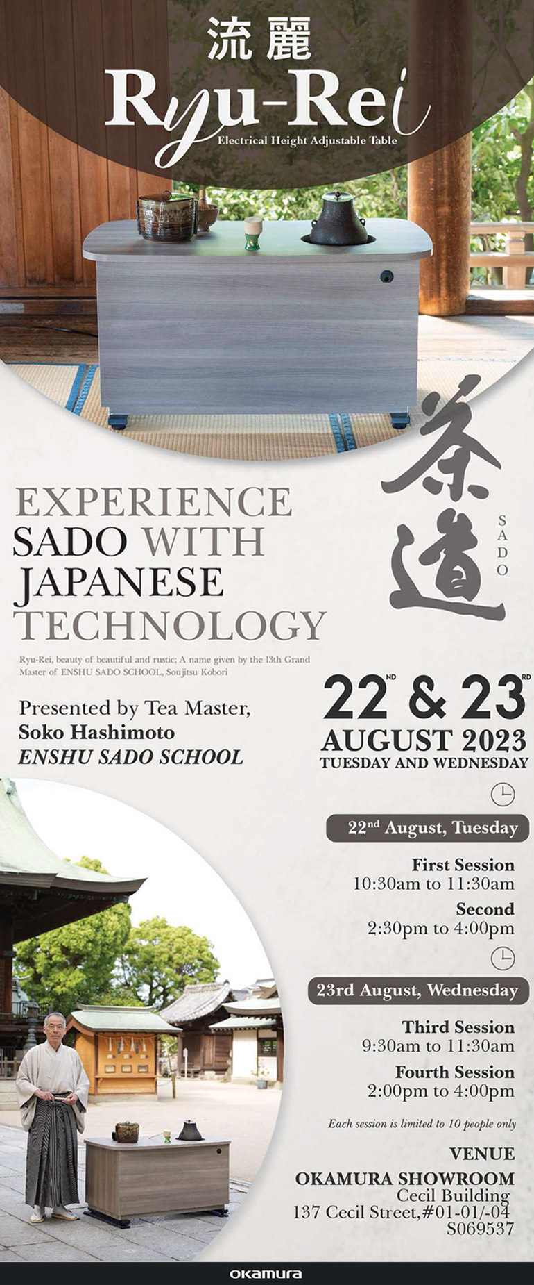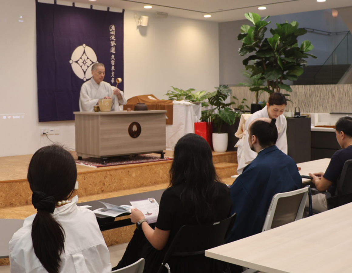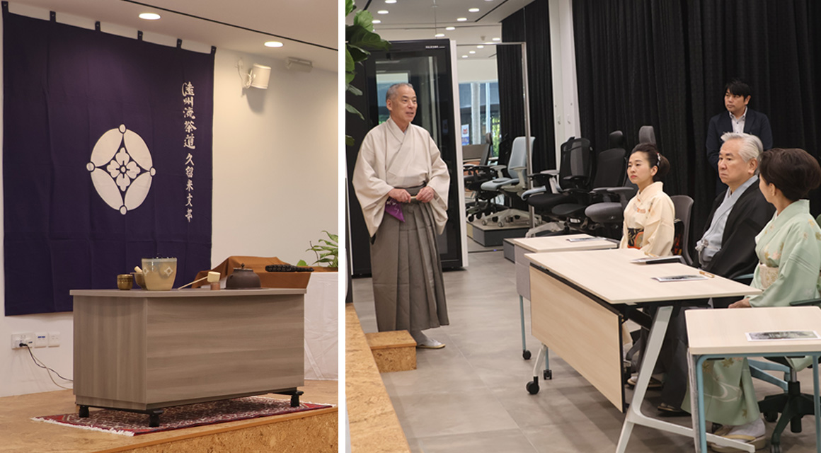 2023年8月、初めて海外で「流麗デスク」を持ち出し、お茶を点てたのはOIS(オカムラ・インターナショナル・シンガポール)で、でした。2024年8月には2回目の呈茶(ていちゃ)を昨年と同じくOISで開催しました。