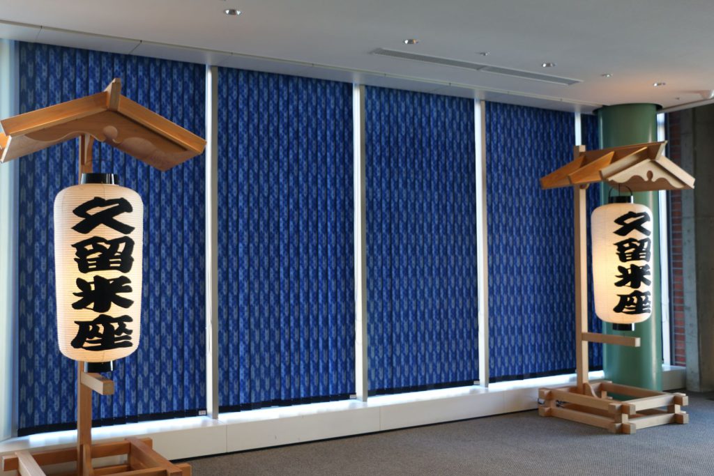 新調した久留米絣バーチカルブラインドを寄贈させて頂きましたので、